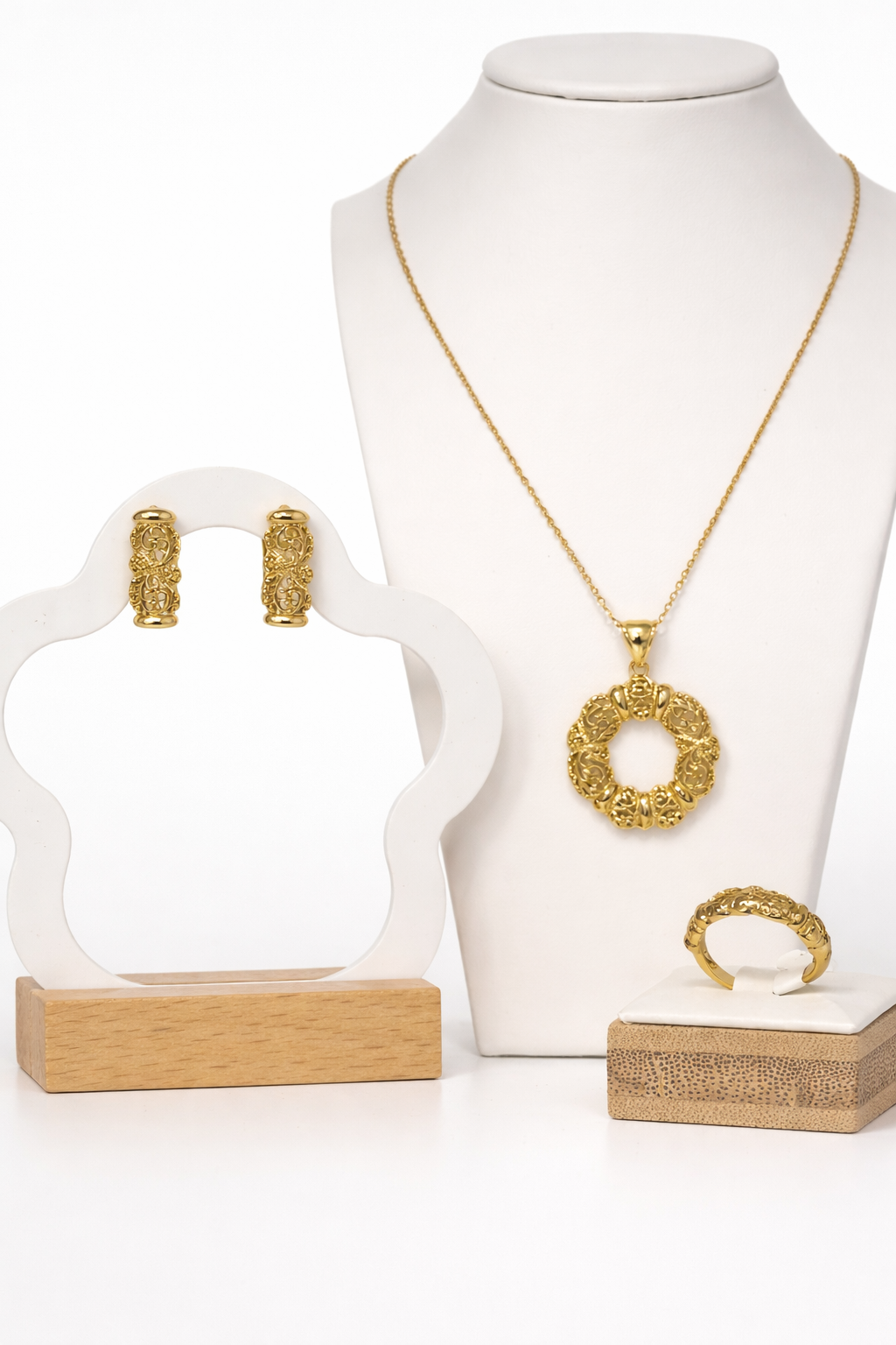 Conjunto 3 piezas de inspiración marroquí, con delicados grabados artesanales. Elegante, atemporal y lleno de carácter.